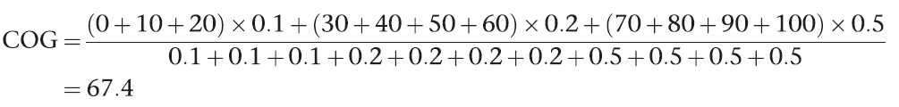 - 수직선이 통합된 집합을 무게가 같은 두 부분으로 가르는 지점의 값(무게 중심, COG, Centre of Gravity)을 최종 결과로 취한다.