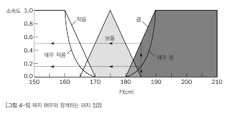 - 퍼지 집합 : 원소가 두 집합 어느 쪽이든 얼마만큼 속할까?