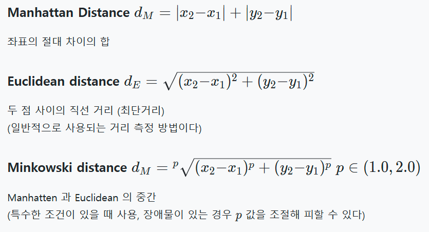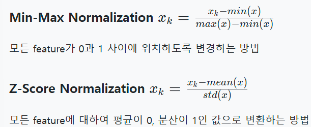 - Data feature의 단위 혹은 스케일이 다를 때, Distance는 단위가 큰 feature에 더 큰 영향을 받는다.