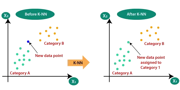 - 새로 입력된 데이터는 기존에 있는 값들 중에서 가장 비슷한 것(가까운 것 : Nearest Neighbor)으로 분류할 수 있다.