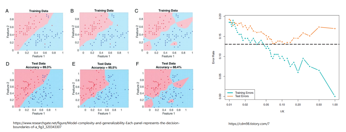 - KNN알고리즘은 k 값에 따라 성능이 변한다.