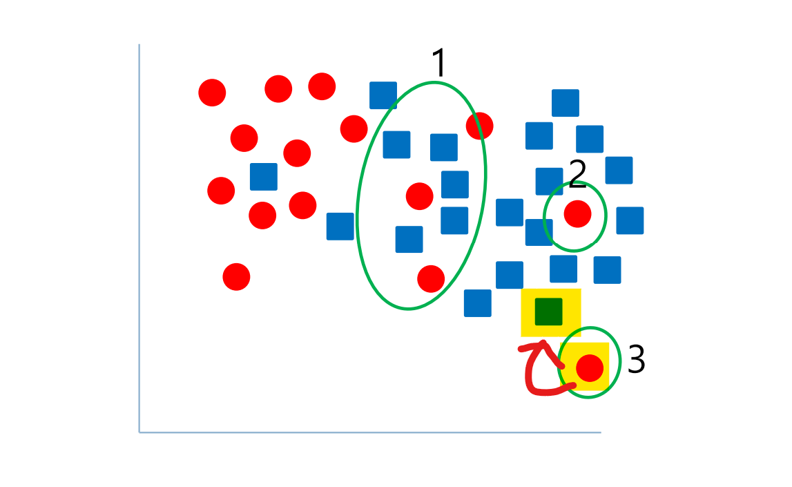 - 최근접 이웃 알고리즘은 Noisy Sample로 인해 성능이 떨어질 수 있다.