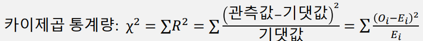 2. 기대 도수 계산 -> (각 행의 합 * 각 열의 합) / 총합