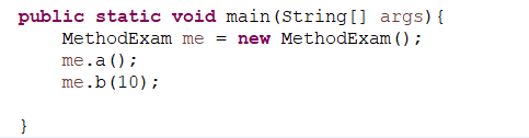 메인 메서드 안에 값을 넣어줍니다. 그러면 "나는 a()입니다" 와 10이 출력 됩니다.