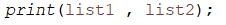 그 다음으로 print 메서드를 이용하여 list1 과 list2 의 엘리먼트 값을 출력해 줍니다.
