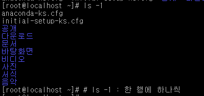 ls -1 파일을 한행에 하나 씩 나타냅니다.
