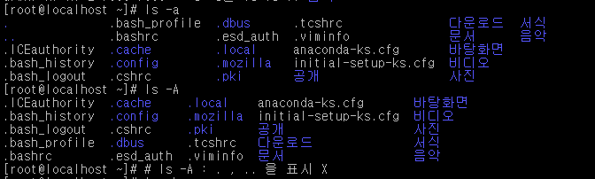 ls -A 는 . , .. 을 표시하지 않습니다.