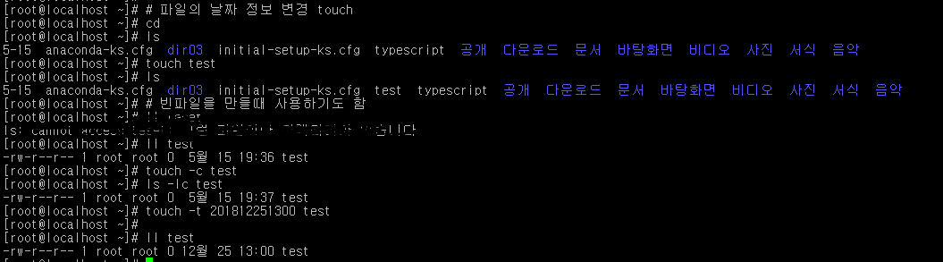 touch -t 2018122251300 test 는 test 파일을 2018년 12우러 25일 1시로 설정합니다.