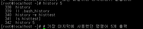 history 5 를 치게 되면 마지막에 사용했던 5개의 명령어만 출력됩니다.