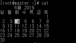 cal [원하는 달] [원하는 년도] : 원하는 년과 원하는 달의 달력을 나타내준다.